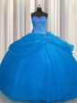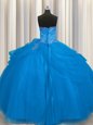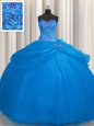 Sumptuous Really Puffy Blue Ball Gowns Beading Quince Ball Gowns Lace Up Tulle Sleeveless Floor Length