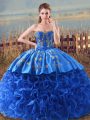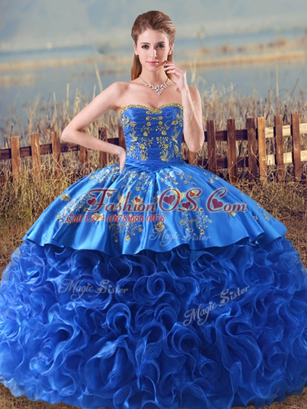 Sumptuous Royal Blue Vestidos de Quinceanera Sweet 16 and Quinceanera with Embroidery and Ruffles Sweetheart Sleeveless Brush Train Lace Up