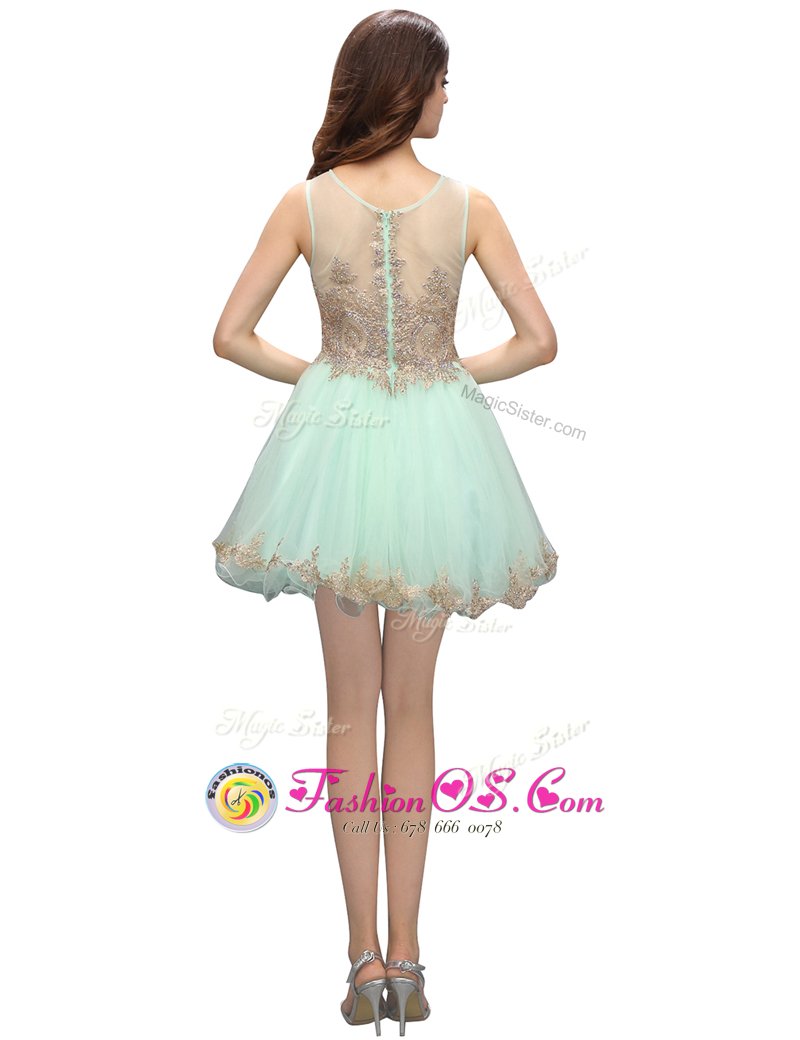 Home >  Prom Dresses >  Perfect Prom Dresses > Sumptuous Scoop Beading and Appliques Apple Green Zipper Sleeveless Mini Length