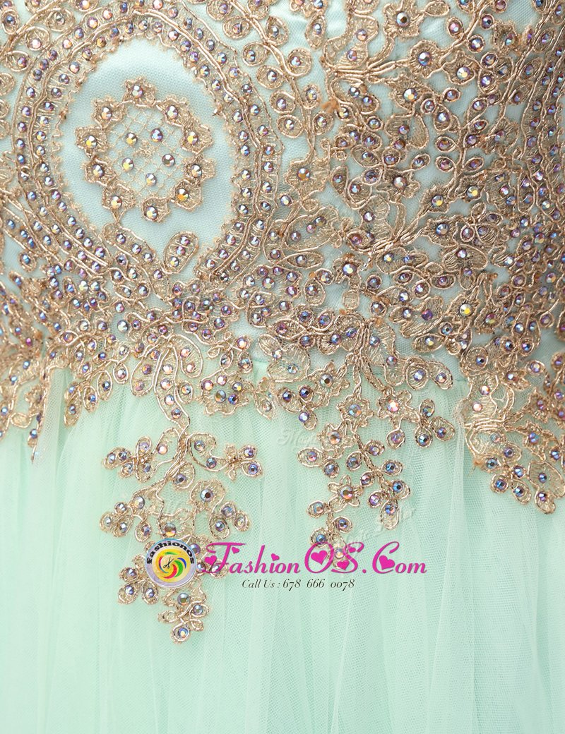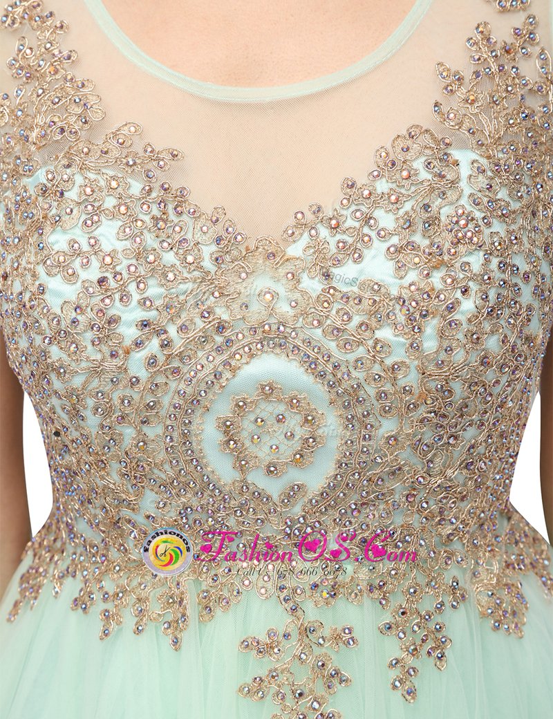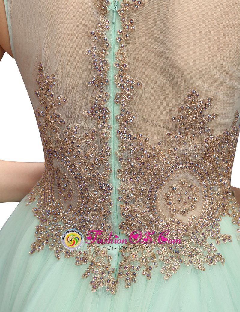 Sumptuous Scoop Beading and Appliques Apple Green Zipper Sleeveless Mini Length