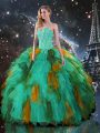 Sumptuous Sleeveless Floor Length Beading and Ruffles Lace Up Quince Ball Gowns with Multi-color