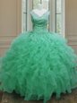 Home >  Quinceanera Dresses >  Fast Delivery Quinceanera Dresses > Sumptuous Sleeveless Floor Length Beading and Ruffles Zipper Quince Ball Gowns with Apple Green
