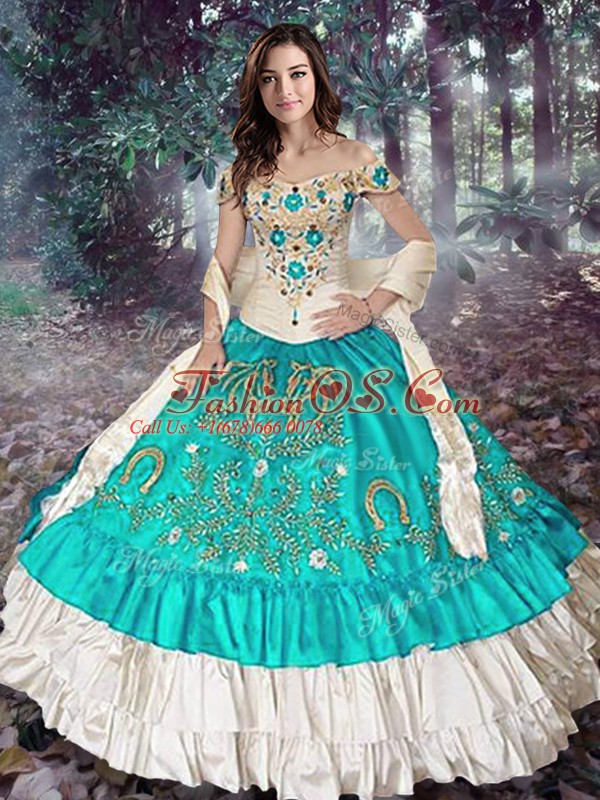 Home >  Quinceanera Dresses >  In Stock Quinceanera Dresses > Sumptuous Sleeveless Lace Up Floor Length Embroidery and Ruffled Layers Quinceanera Gowns