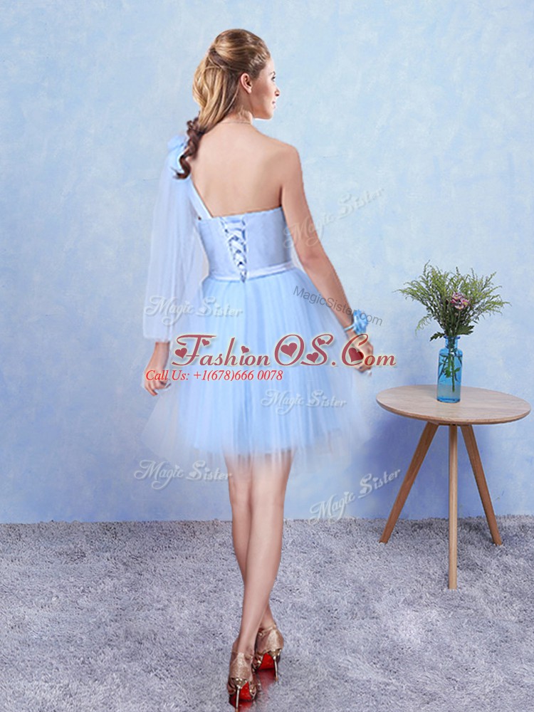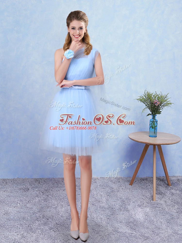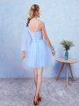 Home >  Special Occasion Dresses >  Discount Dama Dresses > Sumptuous Sleeveless Mini Length Belt Lace Up Dama Dress with Aqua Blue