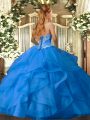 Sumptuous Sleeveless Tulle Floor Length Lace Up Sweet 16 Dress in Aqua Blue with Beading and Ruffles