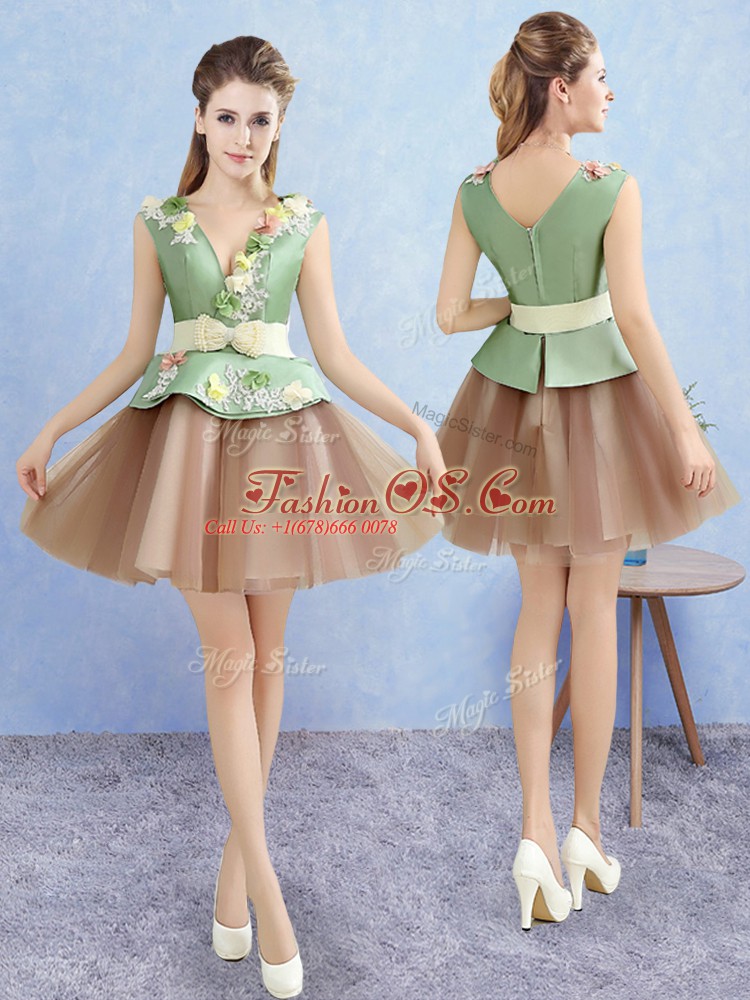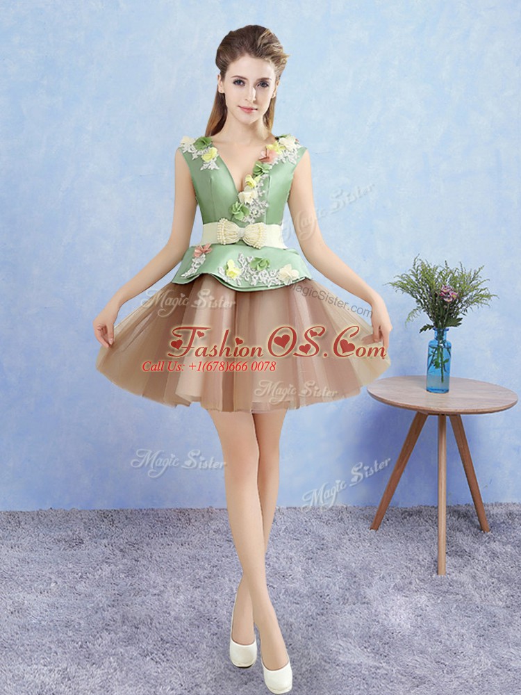 Sumptuous Tulle V-neck Sleeveless Zipper Hand Made Flower Prom Dresses in Multi-color
