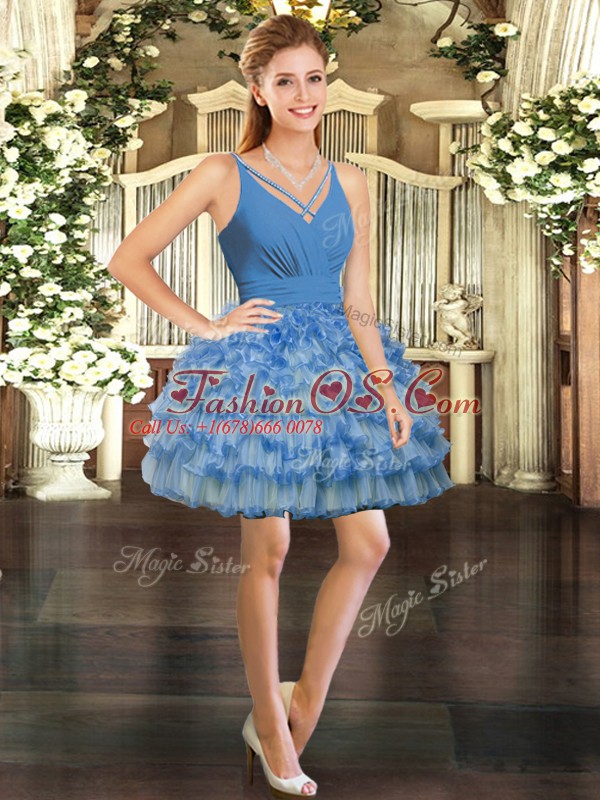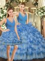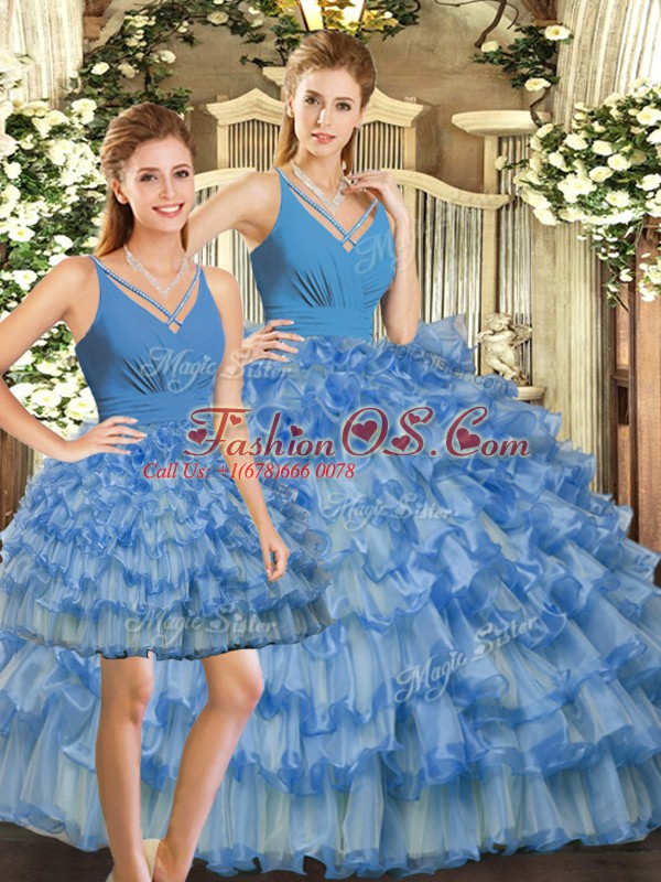 Sumptuous V-neck Sleeveless Organza Sweet 16 Dresses Ruffles and Ruffled Layers Backless