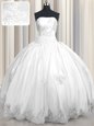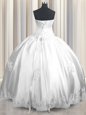 Sumptuous White Lace Up Strapless Beading and Appliques Quinceanera Dresses Taffeta Sleeveless