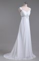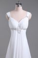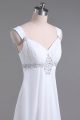 Sumptuous White Lace Up Straps Beading Wedding Gowns Chiffon Sleeveless Brush Train