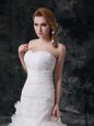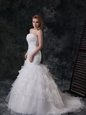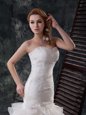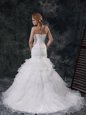 Home >  Wedding Dresses >  Popular Wedding Dresses > Sumptuous White Mermaid Organza Sweetheart Sleeveless Beading and Ruffled Layers With Train Lace Up Wedding Gowns