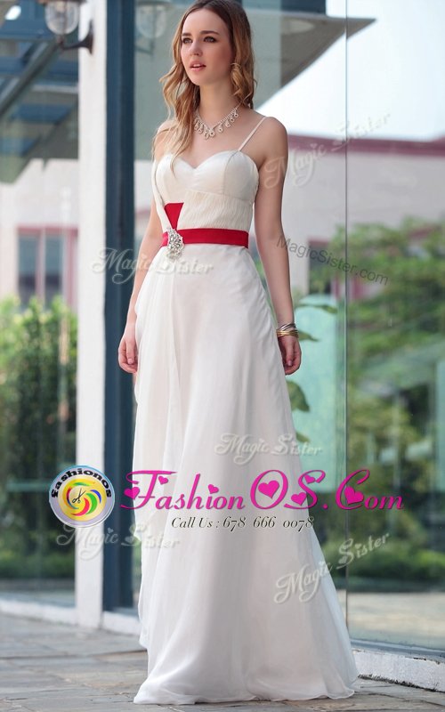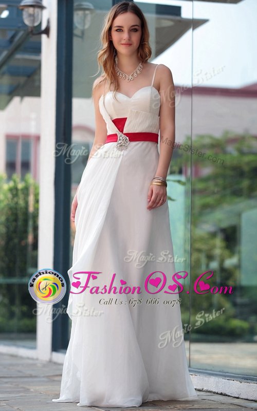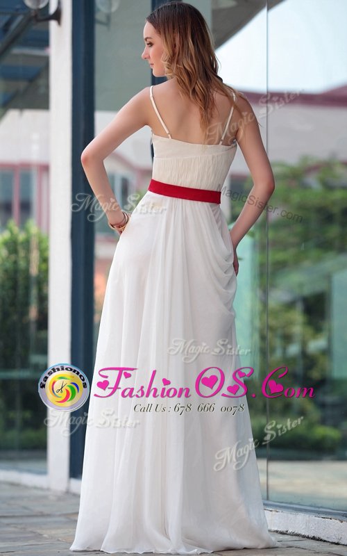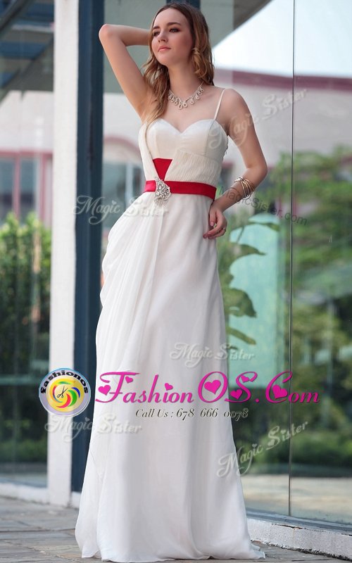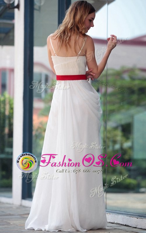 Home >  Prom Dresses >  Perfect Prom Dresses > Sumptuous White Satin Side Zipper Spaghetti Straps Sleeveless Floor Length Belt