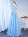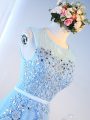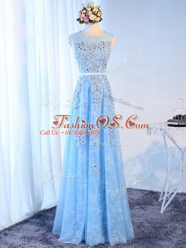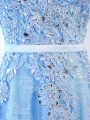 Home >  Prom Dresses >  Christmas Party Dresses > Super Baby Blue Zipper Party Dress for Toddlers Beading and Lace and Appliques and Belt Sleeveless Floor Length