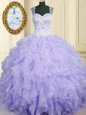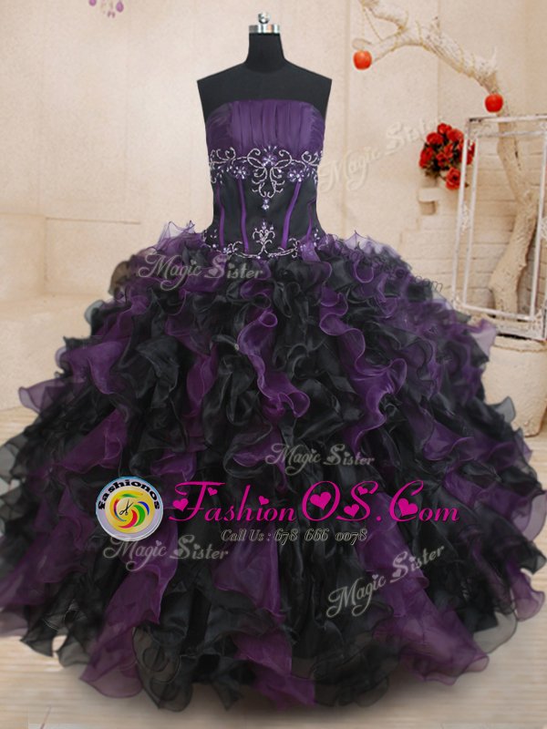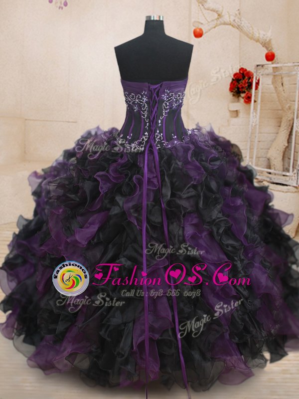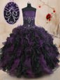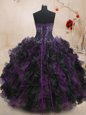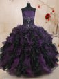 Super Black And Purple Lace Up Vestidos de Quinceanera Beading and Ruffles Sleeveless Floor Length