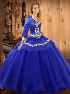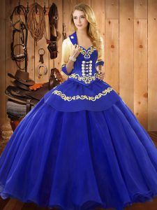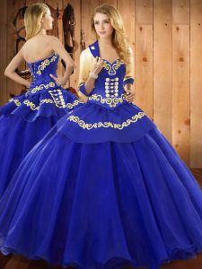 Super Blue Ball Gowns Sweetheart Sleeveless Tulle Floor Length Lace Up Ruffles Sweet 16 Dress