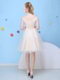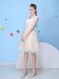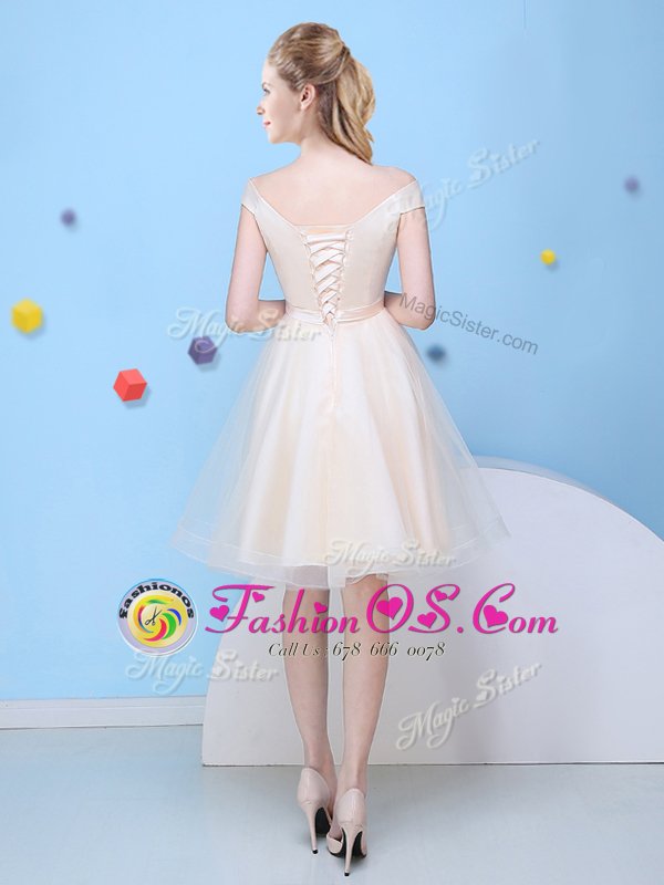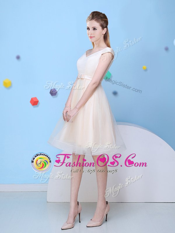 Super Champagne A-line Bowknot Damas Dress Lace Up Tulle Cap Sleeves Knee Length