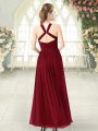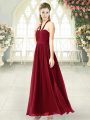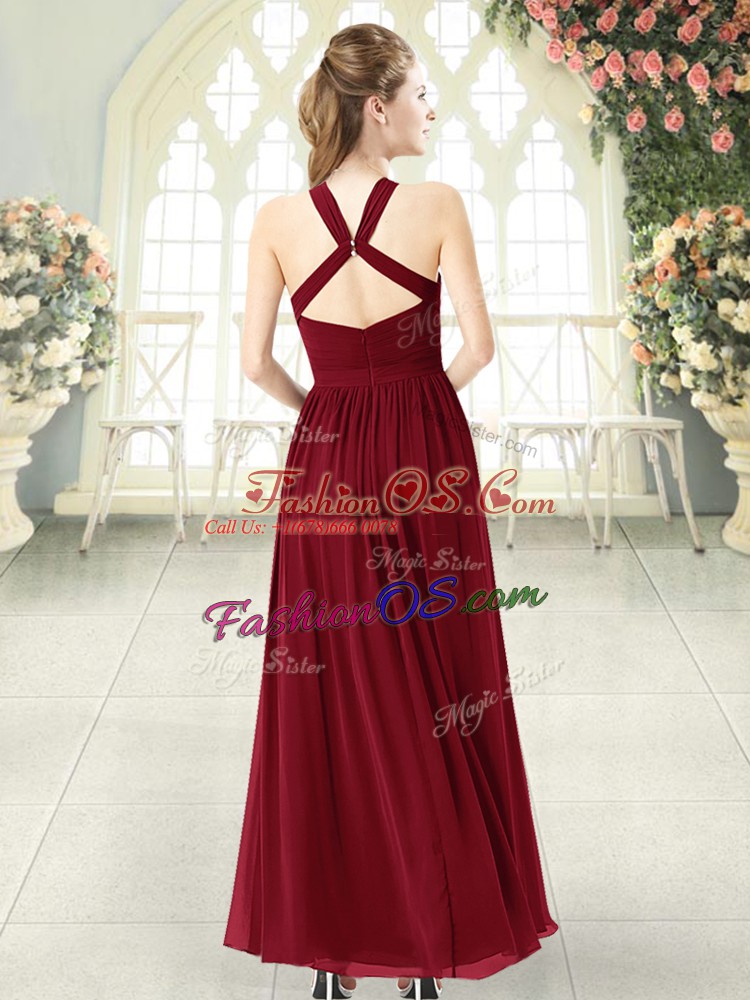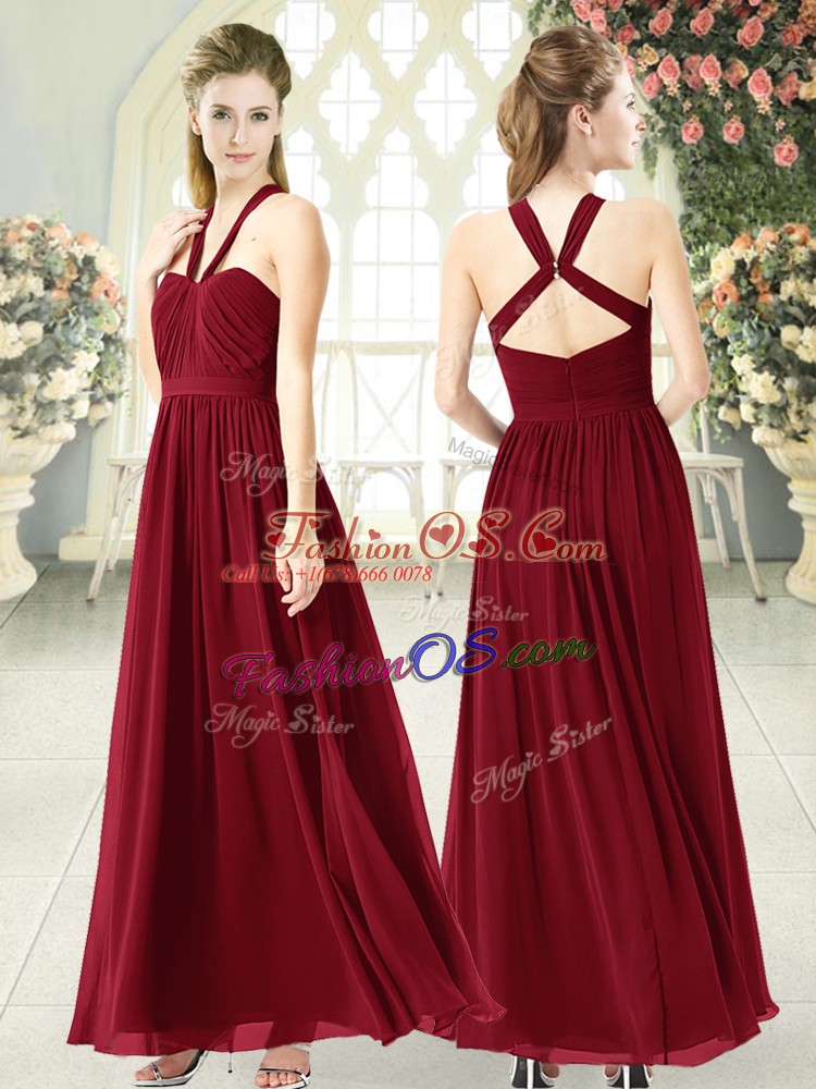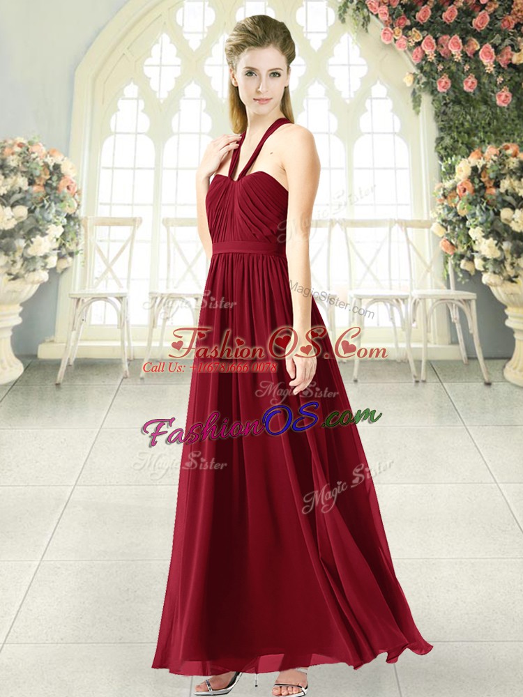 Super Chiffon Halter Top Sleeveless Backless Ruching Prom Dresses in Burgundy
