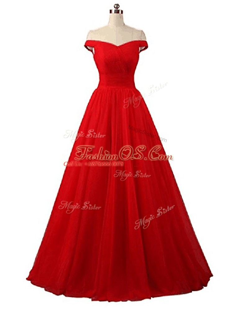 Super Floor Length Baby Pink Dress for Prom Tulle Sleeveless Ruching