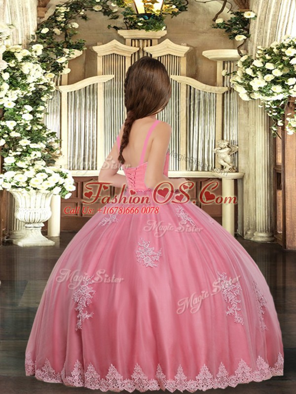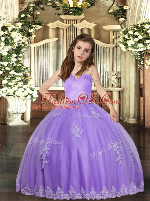 Super Floor Length Lavender Pageant Dress Wholesale Tulle Sleeveless Appliques