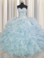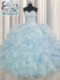 Home >  Quinceanera Dresses >  Fashionable Quinceanera Dresses > Super Floor Length Light Blue Quinceanera Gown Sweetheart Sleeveless Lace Up