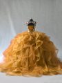 Home >  Quinceanera Dresses >  Custom Made Quinceanera Dresses > Super Gold Lace Up Quince Ball Gowns Beading and Ruffles Sleeveless Floor Length