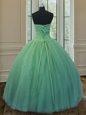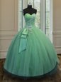 Home >  Quinceanera Dresses >  Unique Quinceanera Dresses > Super Green Lace Up Sweetheart Beading and Ruching and Bowknot Ball Gown Prom Dress Tulle and Sequined Sleeveless