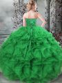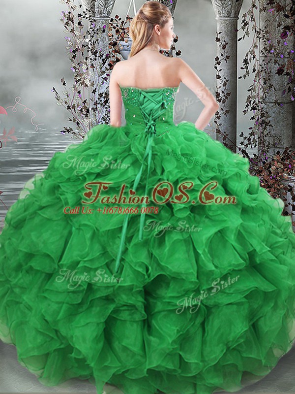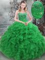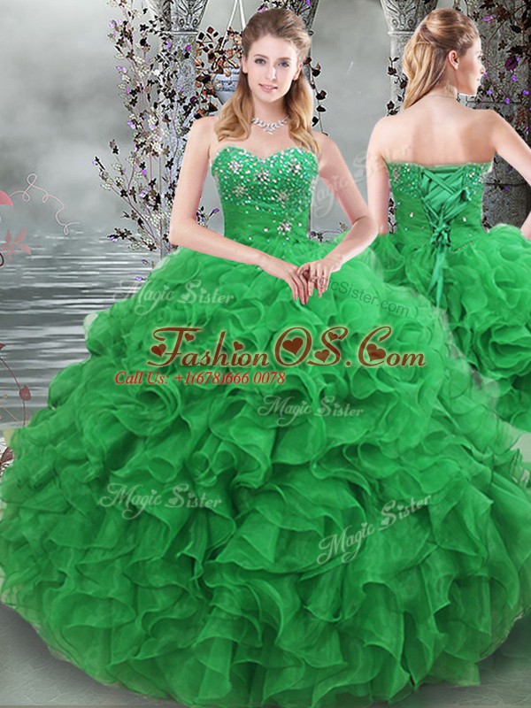 Super Green Sleeveless Floor Length Beading and Ruffles Lace Up Quinceanera Dresses