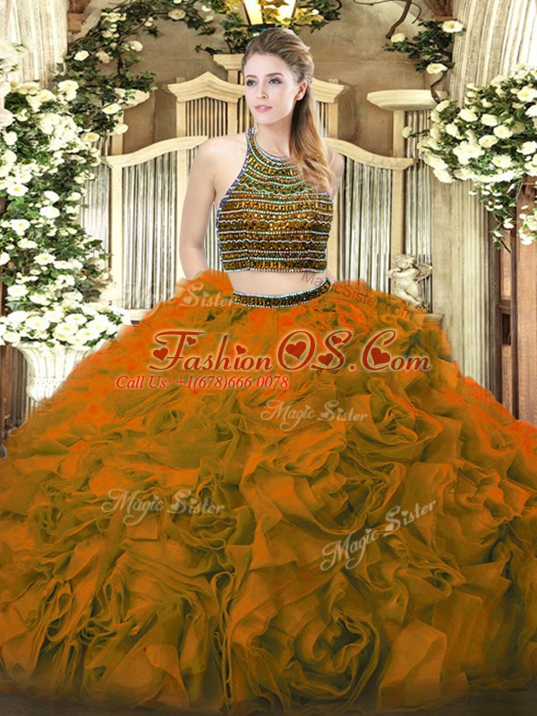 Super Halter Top Sleeveless Tulle 15th Birthday Dress Beading and Ruffles Lace Up
