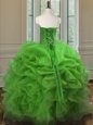 Super Lace Up Sweetheart Beading and Ruffles Ball Gown Prom Dress Organza Sleeveless