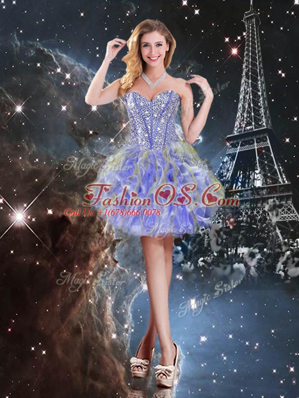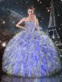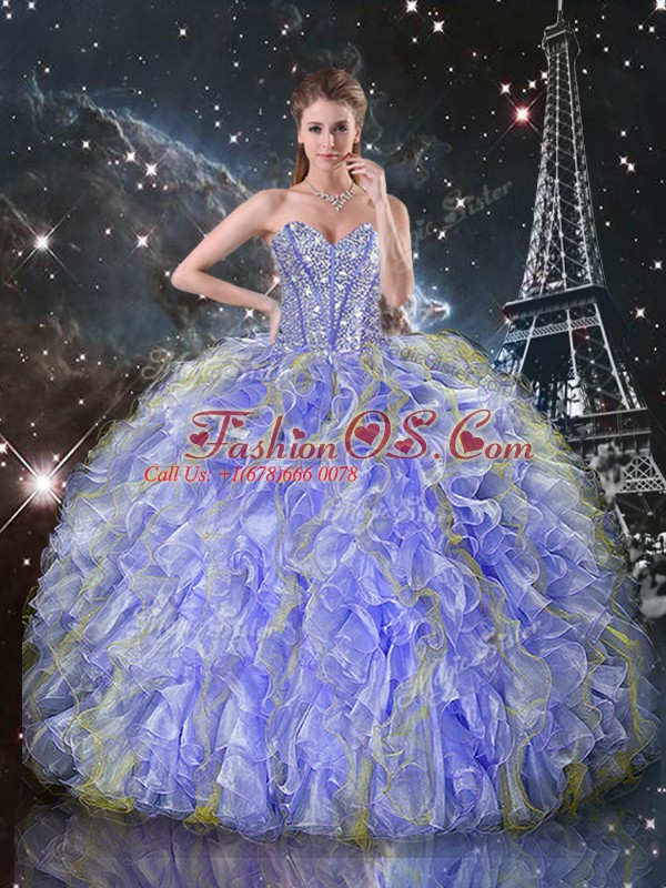 Super Lavender Ball Gowns Organza Sweetheart Sleeveless Beading and Ruffles Floor Length Lace Up 15th Birthday Dress