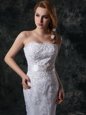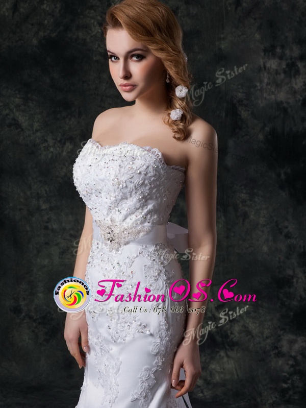Super Mermaid Lace Sweetheart Sleeveless Brush Train Lace Up Beading and Appliques and Bowknot and Belt Wedding Dress in White