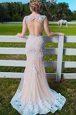 Super Mermaid Scoop Sleeveless Tulle Evening Dress Beading and Appliques Sweep Train Backless