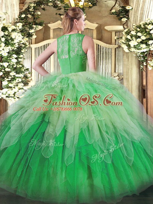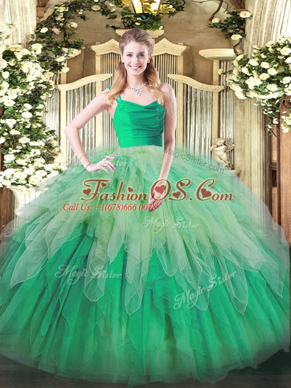 Super Multi-color Quinceanera Gown Military Ball and Sweet 16 and Quinceanera with Ruffles Straps Sleeveless Zipper
