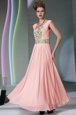Home >  Evening Dresses > Super Pink Sweetheart Neckline Embroidery and Ruching Evening Dress Cap Sleeves Side Zipper