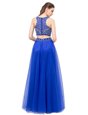 Super Scoop Royal Blue Two Pieces Beading Prom Gown Lace Up Tulle Sleeveless Floor Length