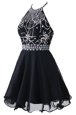 Super Scoop Sleeveless Zipper Homecoming Dress Black Organza