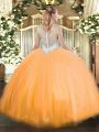 Super Sleeveless Floor Length Beading Zipper Sweet 16 Quinceanera Dress with Apple Green