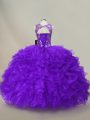 Super Sleeveless Floor Length Ruffles and Sequins Lace Up 15 Quinceanera Dress with Purple