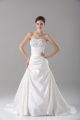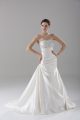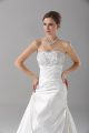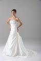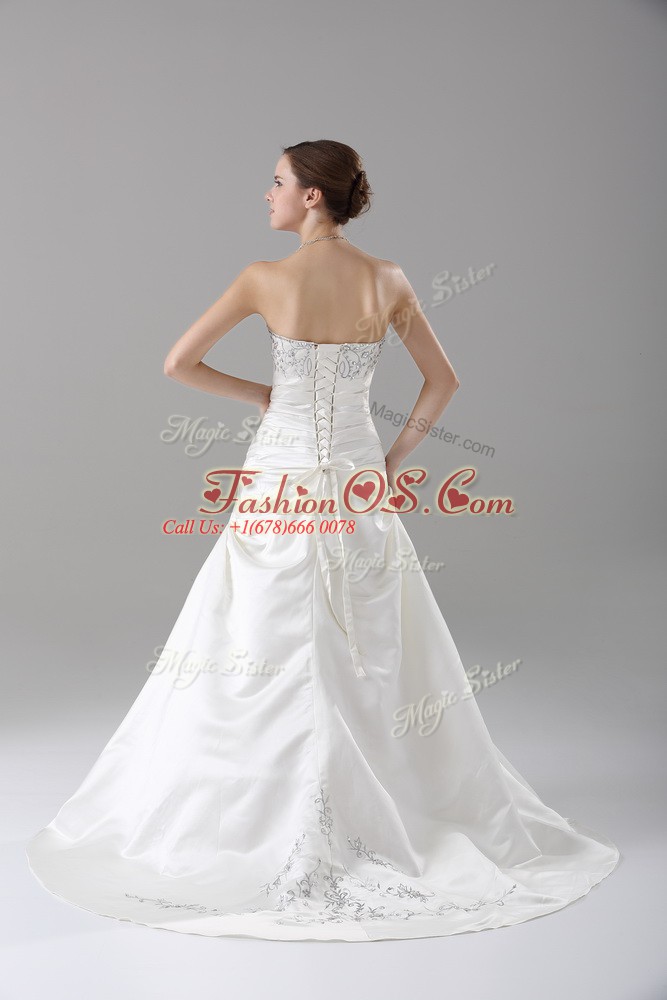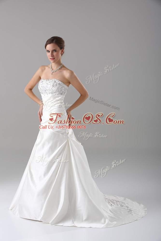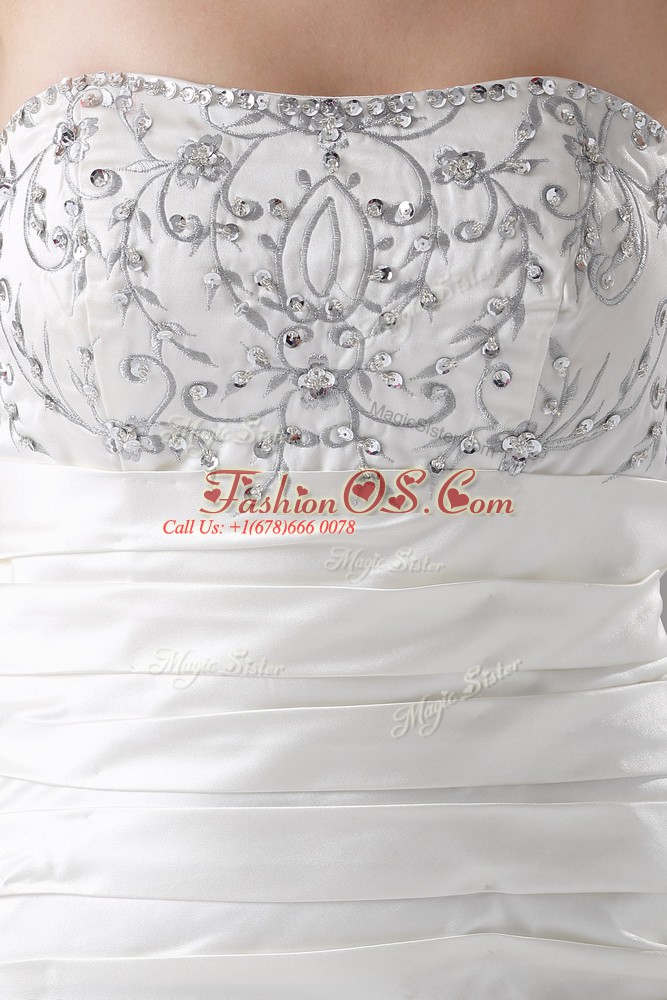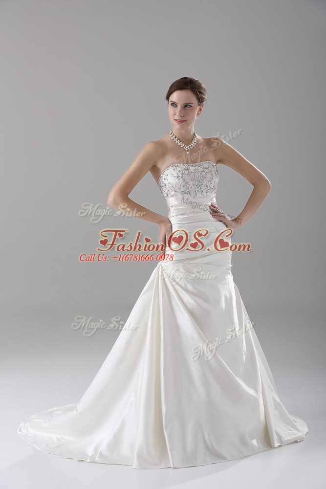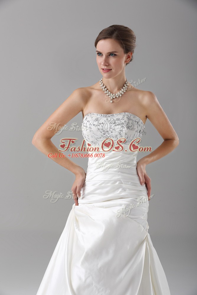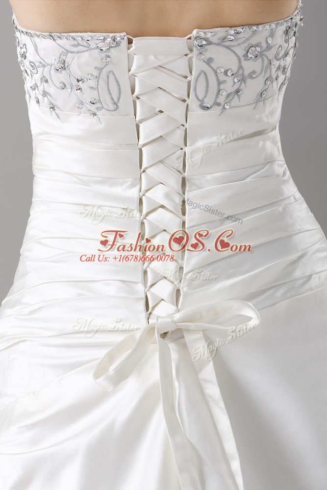 Super Sleeveless Satin Brush Train Lace Up Wedding Gown in White with Beading