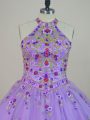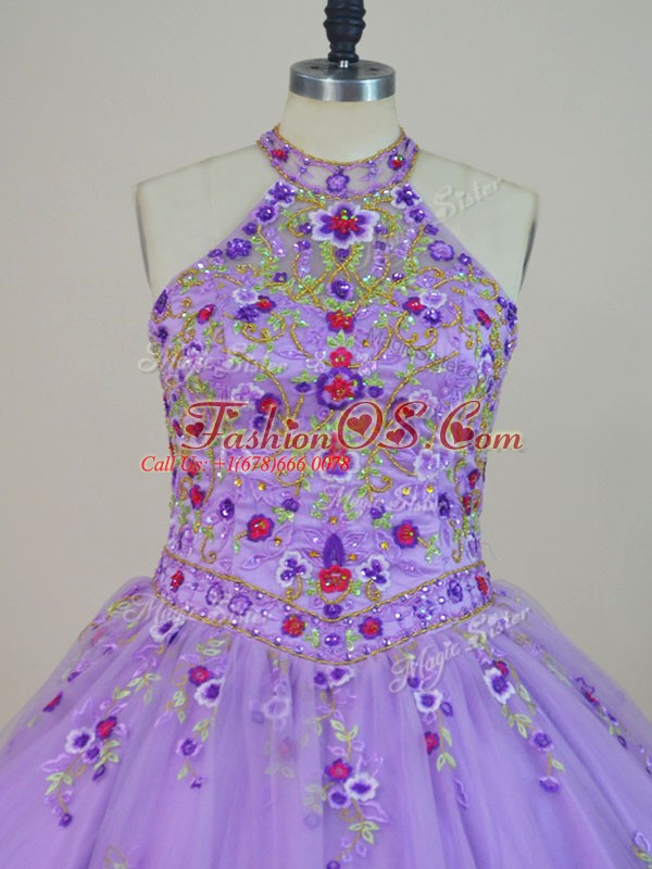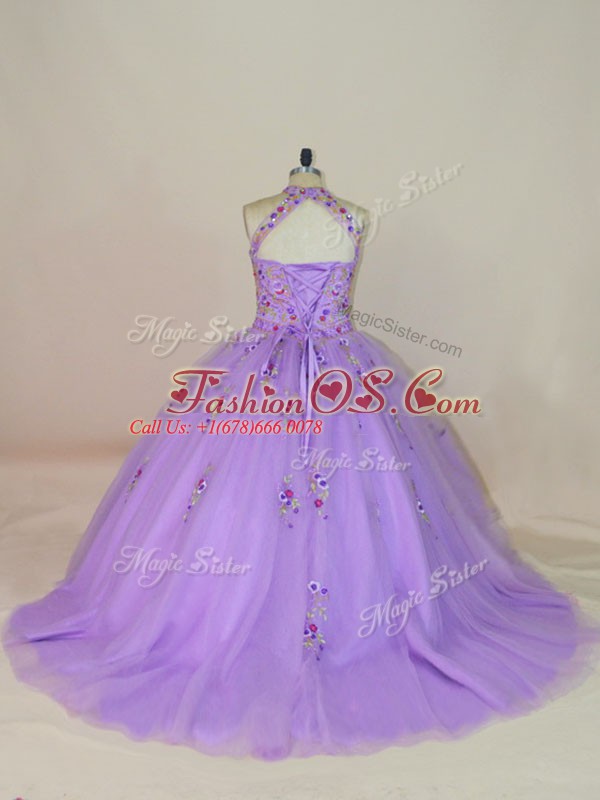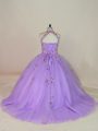 Super Sleeveless Tulle Brush Train Lace Up Ball Gown Prom Dress in Lavender with Beading and Embroidery