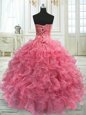 Super Watermelon Red Sleeveless Floor Length Beading and Ruffles Lace Up Sweet 16 Dresses