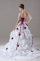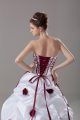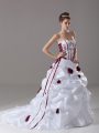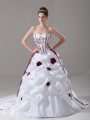 Super White Taffeta Lace Up Wedding Dress Sleeveless Brush Train Embroidery and Pick Ups and Hand Made Flower