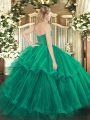 Super Wine Red Sleeveless Ruffled Layers Zipper Quinceanera Gown