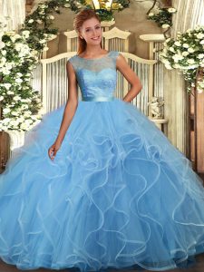 Home >  Quinceanera Dresses >  Pretty Quinceanera Dresses > Superior Baby Blue Sweet 16 Dress Sweet 16 and Quinceanera with Beading and Ruffles Scoop Sleeveless Backless