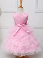 Superior Ball Gowns Kids Pageant Dress Baby Pink Scoop Organza Sleeveless Tea Length Zipper