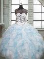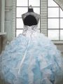 Superior Blue And White Ball Gowns Beading and Ruffles Quince Ball Gowns Lace Up Organza Sleeveless Floor Length