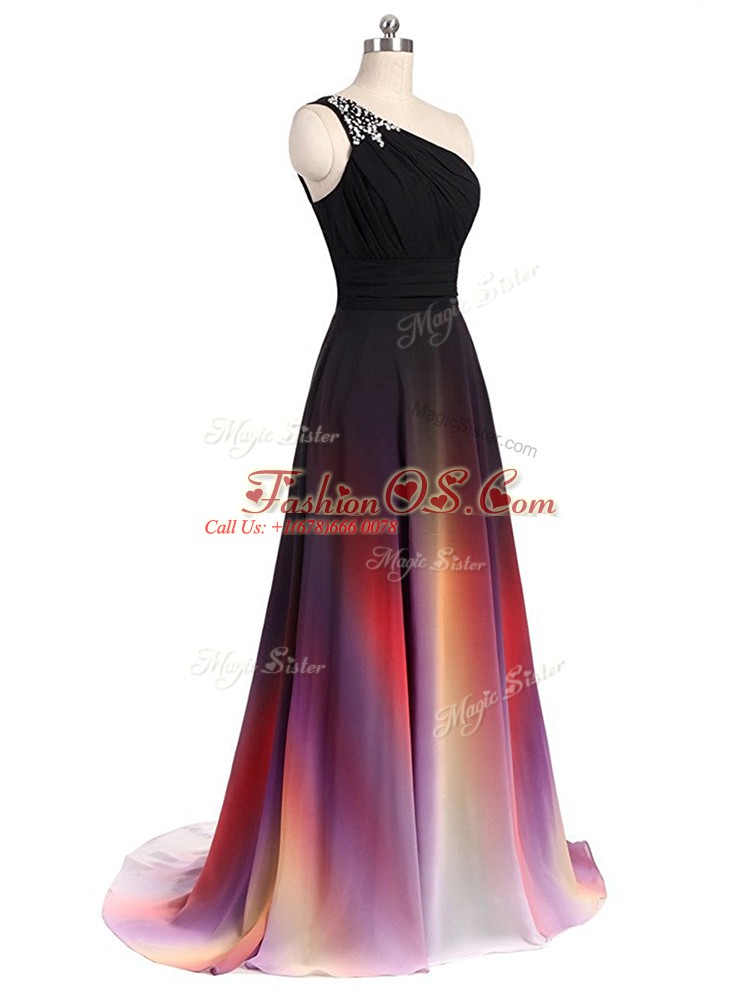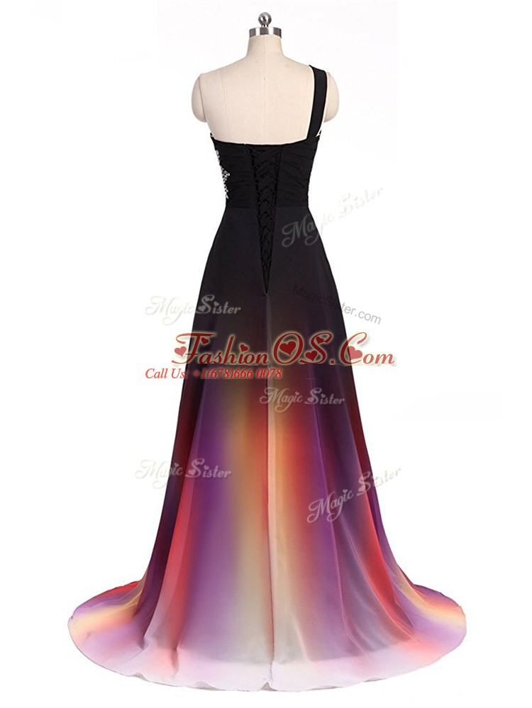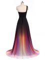 Superior Brush Train Empire Red Carpet Prom Dress Multi-color Chiffon Sleeveless Lace Up