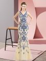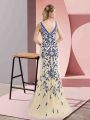 Superior Floor Length Champagne Prom Dresses V-neck Sleeveless Zipper