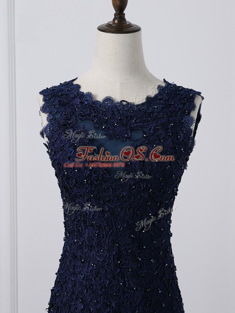 Home >  Special Occasion Dresses >  Elegant Mother of the Bride Dresses > Superior Floor Length Navy Blue Mother Of The Bride Dress Tulle Sleeveless Lace and Appliques