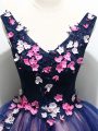 Superior Lace and Appliques and Hand Made Flower Ball Gown Prom Dress Multi-color Lace Up Sleeveless Mini Length
