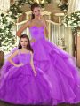 Superior Lilac Sleeveless Floor Length Beading and Ruffles Lace Up Quince Ball Gowns